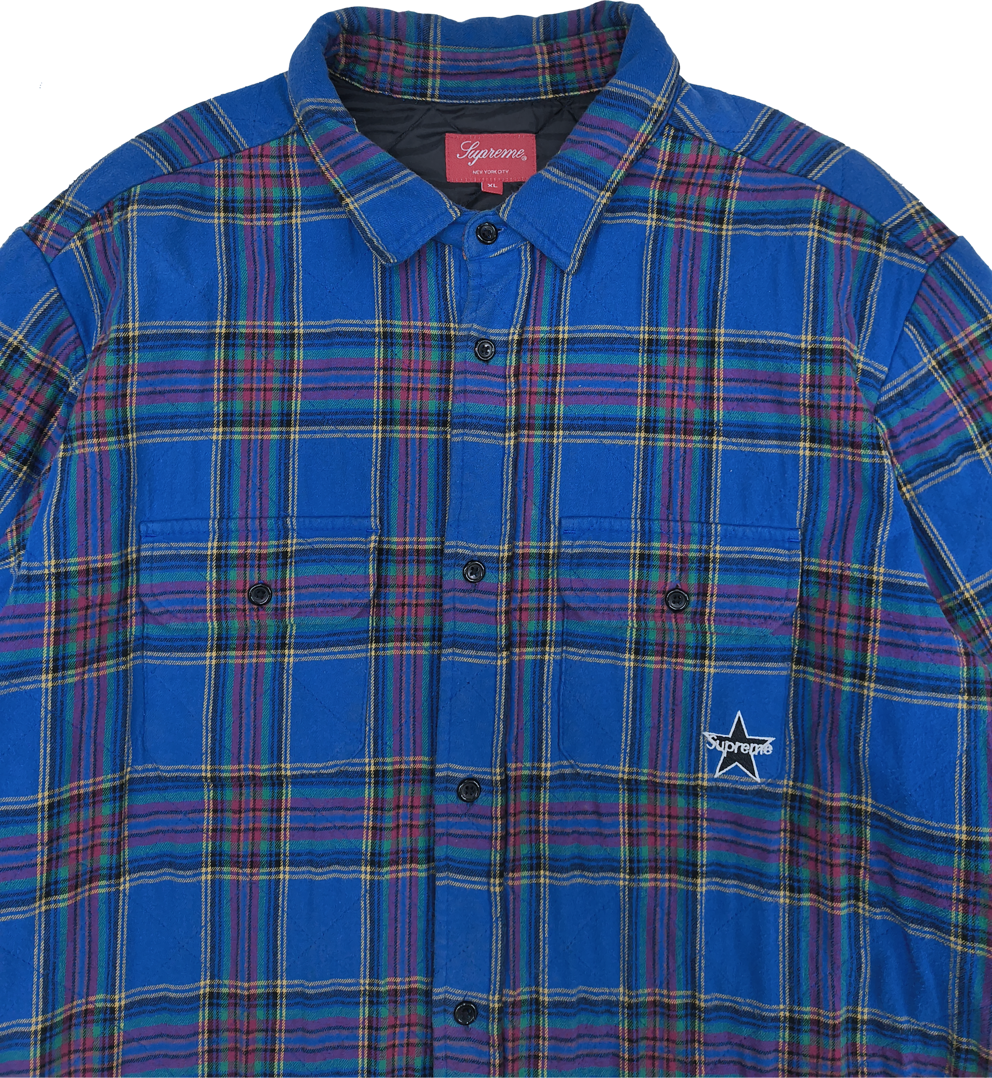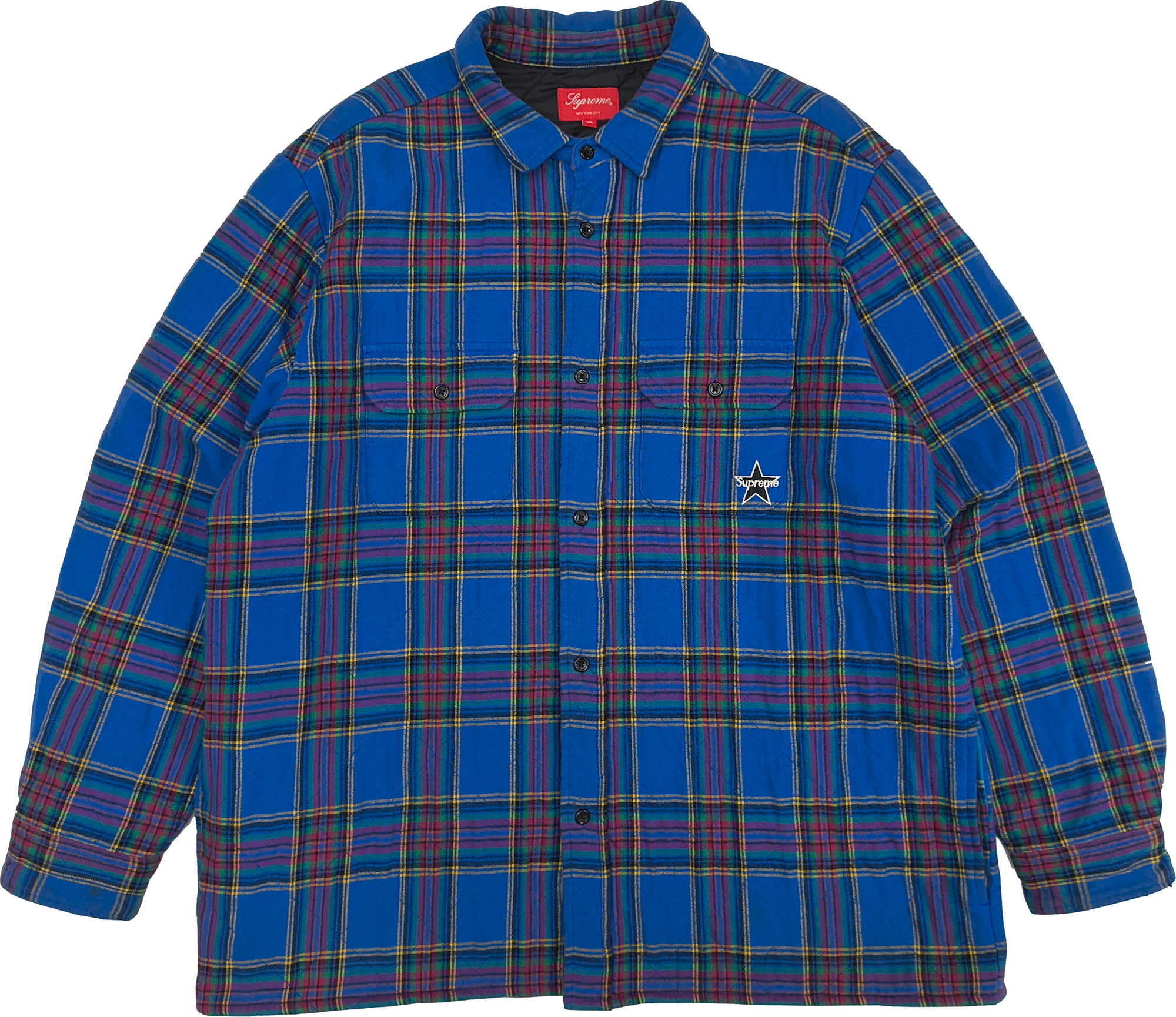 SUPREME QUILTED PLAID FLANNEL JACKET BLUE XL ※USED