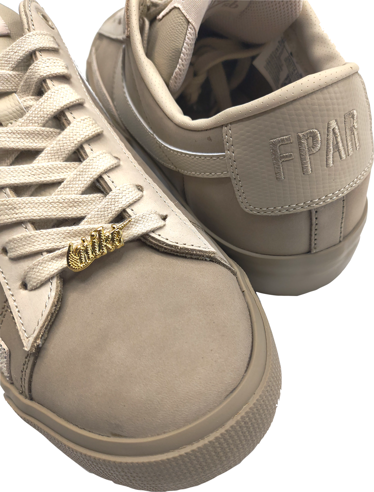ポイントは左右シューレースに付けらたデュプレがゴールドのブリンブリンタイプ