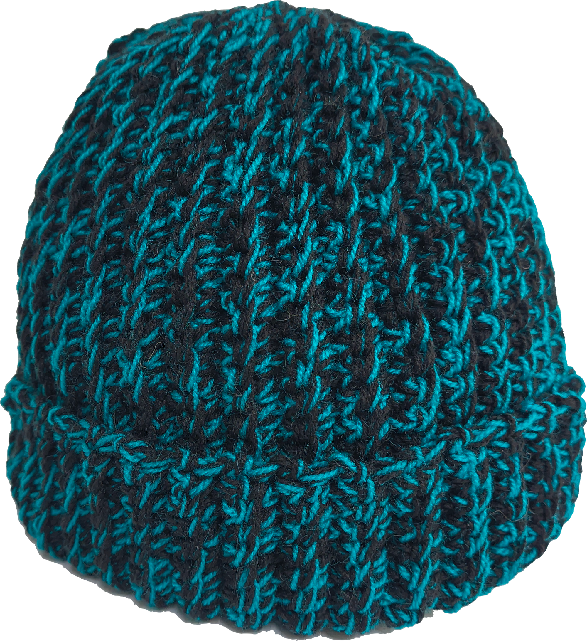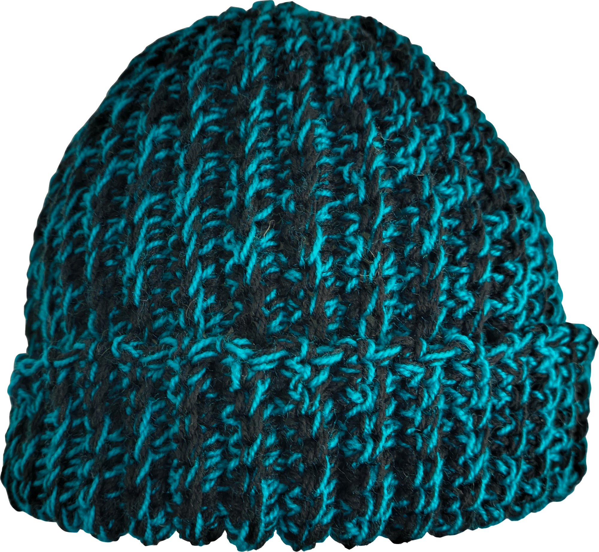 ハンドメイドにて編み込まれたカフ付きのニットキャップ